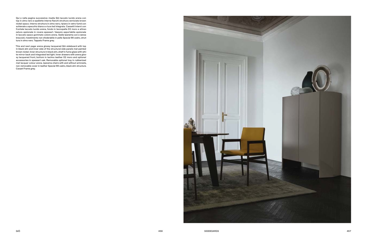 Qui e nella pagina successiva: madia Giò laccato lucido arena con