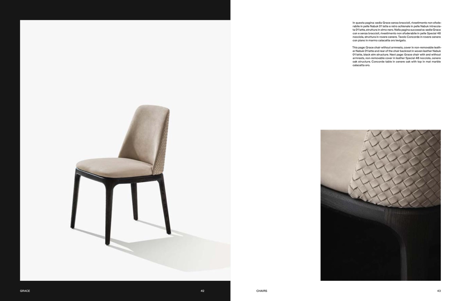 01 latte, black elm structure. Next page: Grace chair with and without