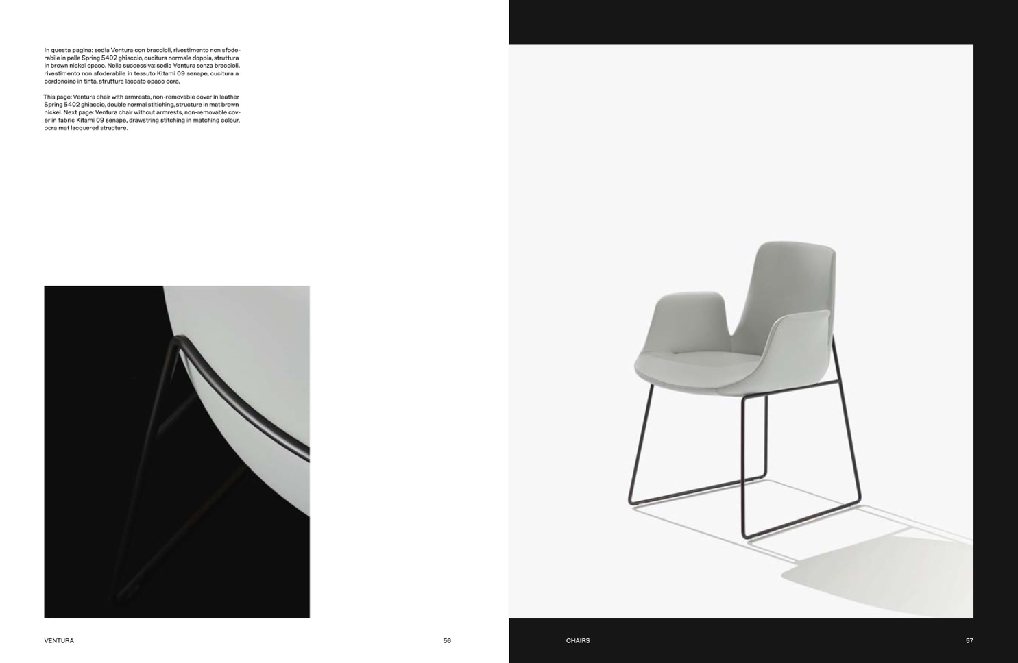 in brown nickel opaco. Nella successiva: sedia Ventura senza braccioli,