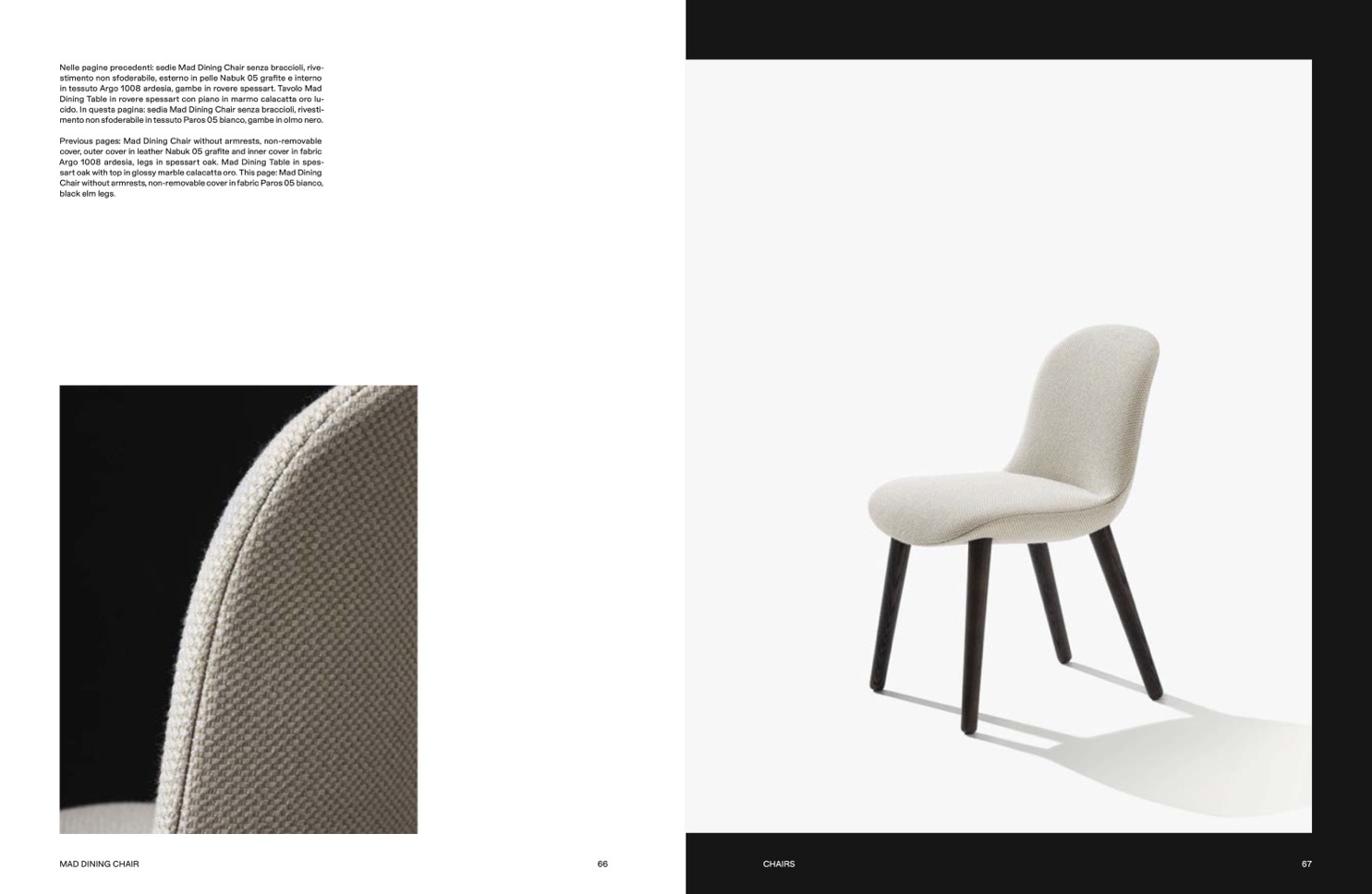 cido. In questa pagina: sedia Mad Dining Chair senza braccioli, rivesti-