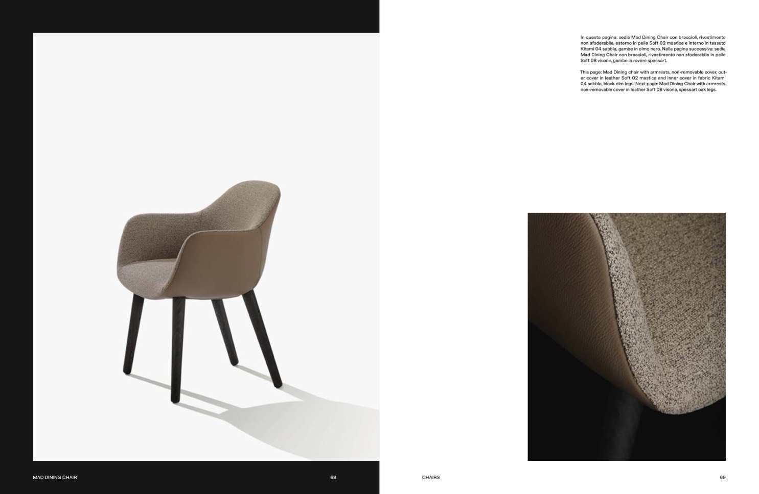 04 sabbia, black elm legs. Next page: Mad Dining Chair with armrests,