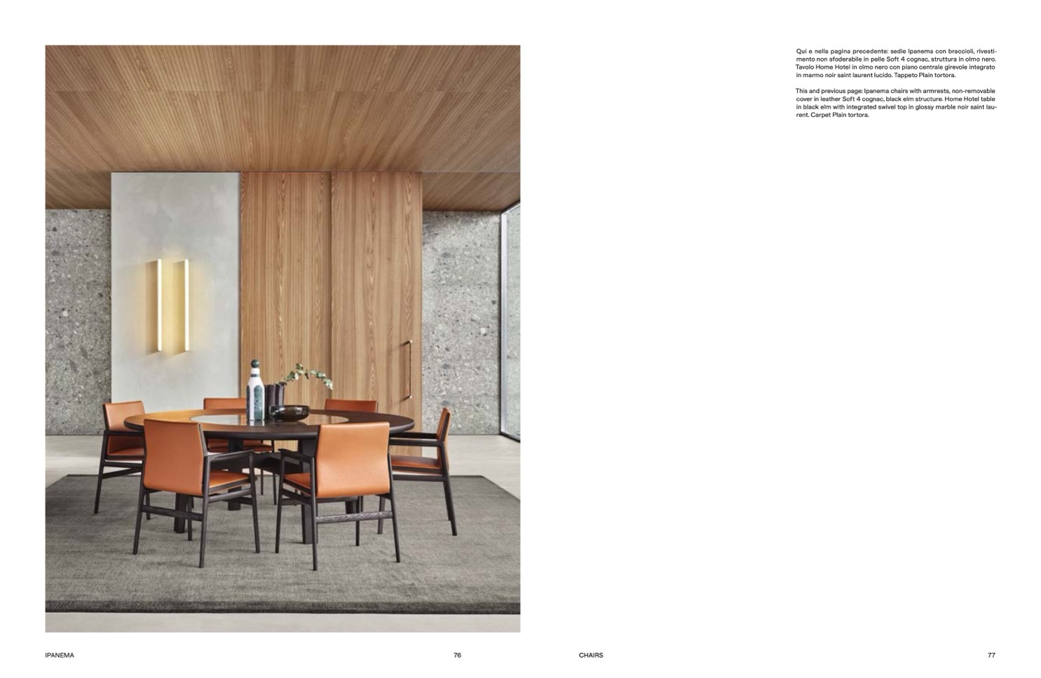 Qui e nella pagina precedente: sedie Ipanema con braccioli, rivesti-
