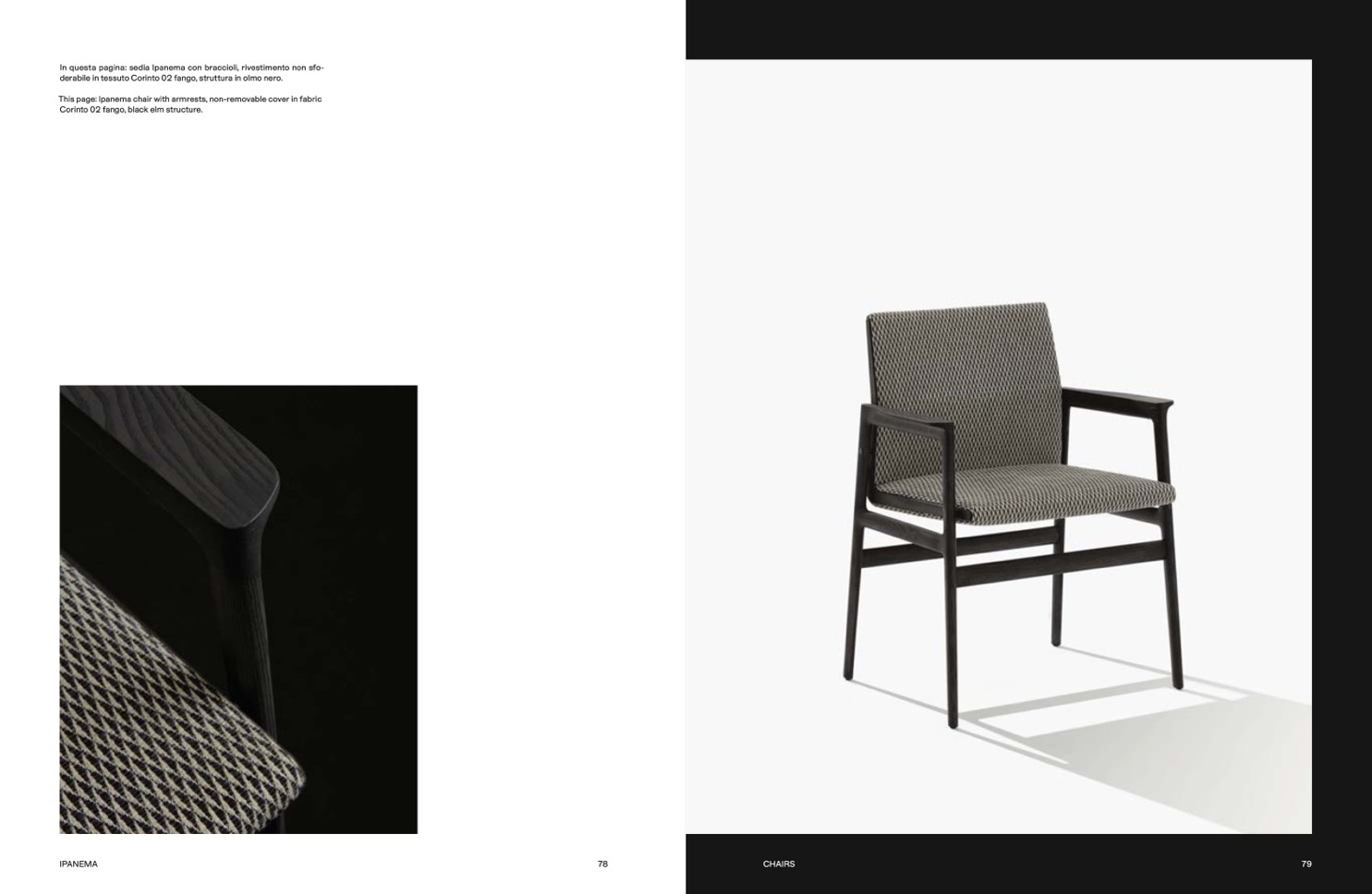 In questa pagina: sedia Ipanema con braccioli, rivestimento non sfo-
