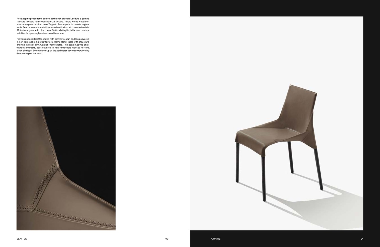 and top in black elm. Carpet Frame perla. This page: Seattle chair