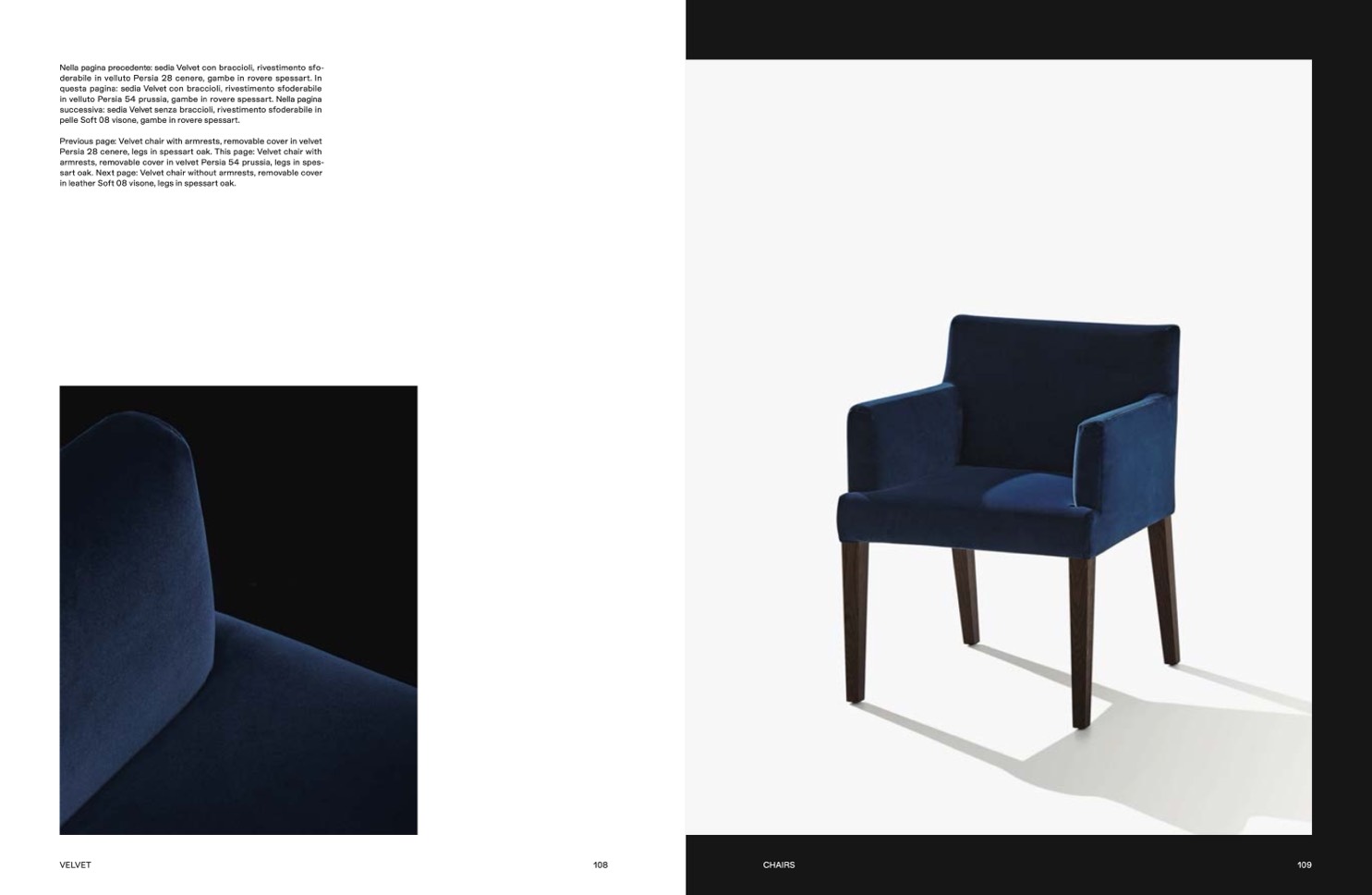 sart oak. Next page: Velvet chair without armrests, removable cover