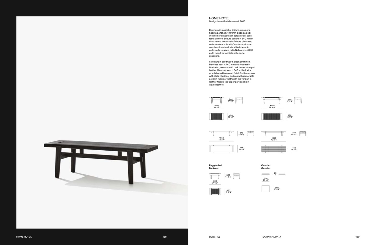leather. Benches seat h 340 in black elm