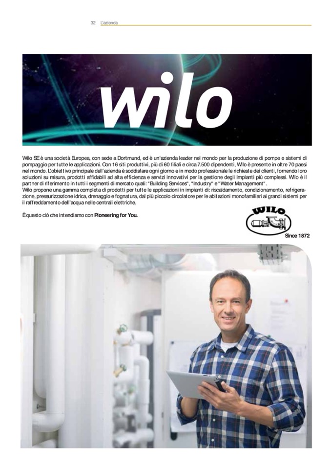 Wilo SE è una società Europea, con sede a Dortmund, ed è un‘azienda leader nel mondo per la produzione di pompe e sistemi di