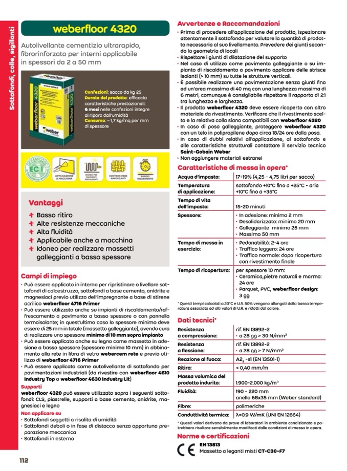 • Il prodotto weberfloor 4320 deve essere ricoperto con altro