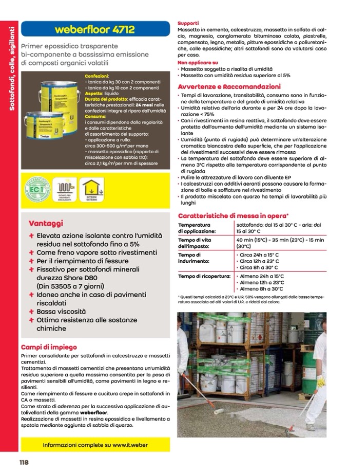 che, colle epossidiche; altri sottofondi sono da valutarsi caso