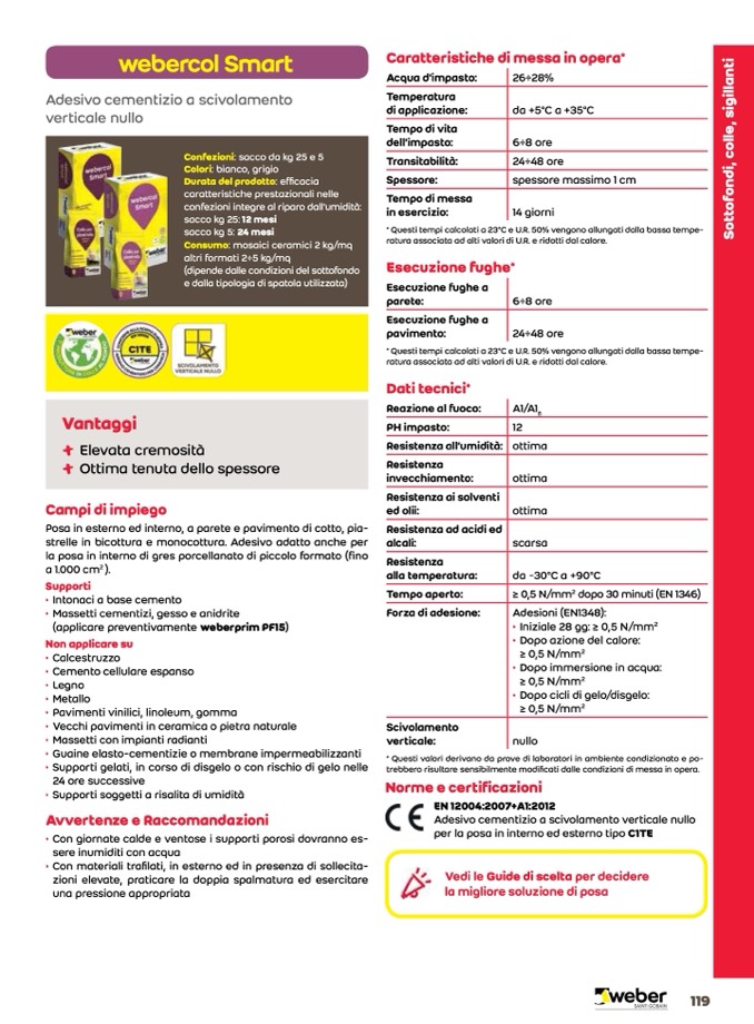 Adesivo cementizio a scivolamento verticale nullo