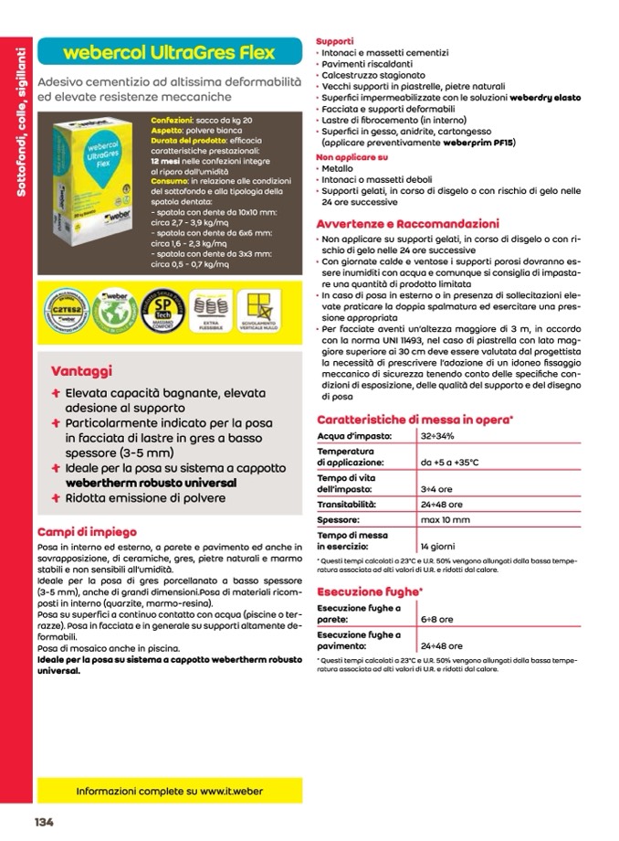 Ideale per la posa su sistema a cappotto webertherm robusto