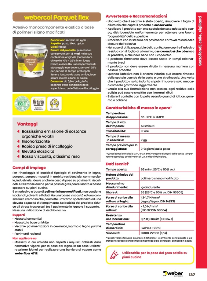 dati. Utilizzabile anche per la posa di gres porcellanato a basso