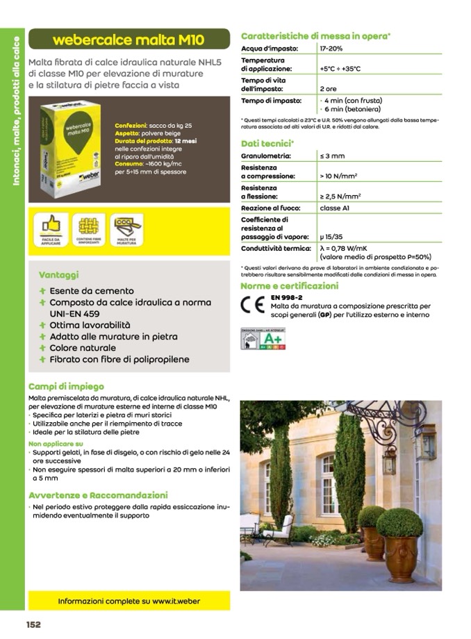 Malta premiscelata da muratura, di calce idraulica naturale NHL,
