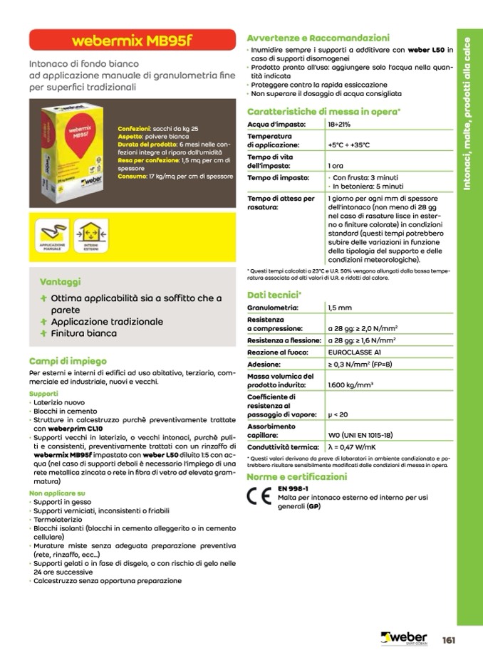 webermix MB95f impastato con weber L50 diluito 1:5 con ac-