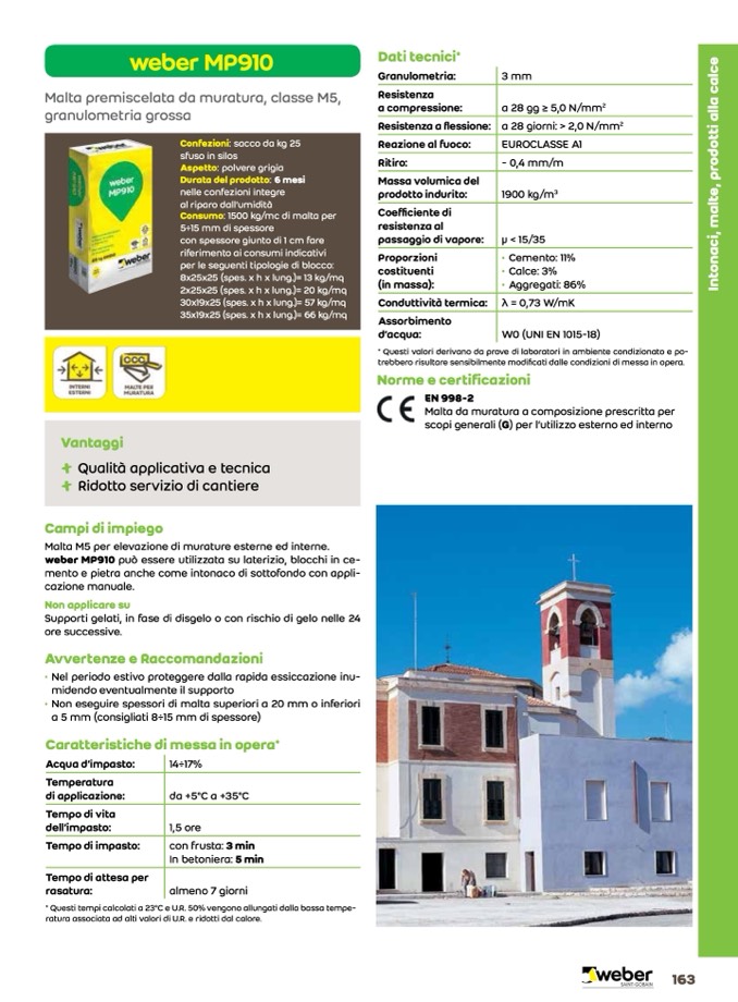 weber MP910 può essere utilizzata su laterizio, blocchi in ce-