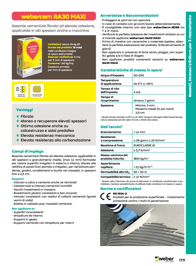 • É consigliabile inserire una rete tipo webertherm RE195 tra