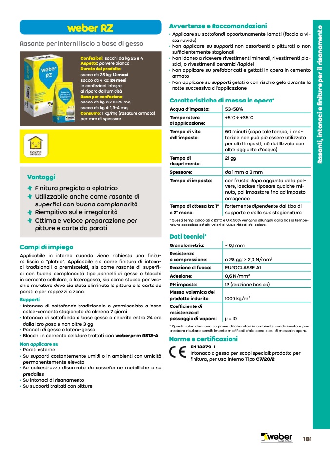 ci tradizionali o premiscelati, sia come rasante di superfi-