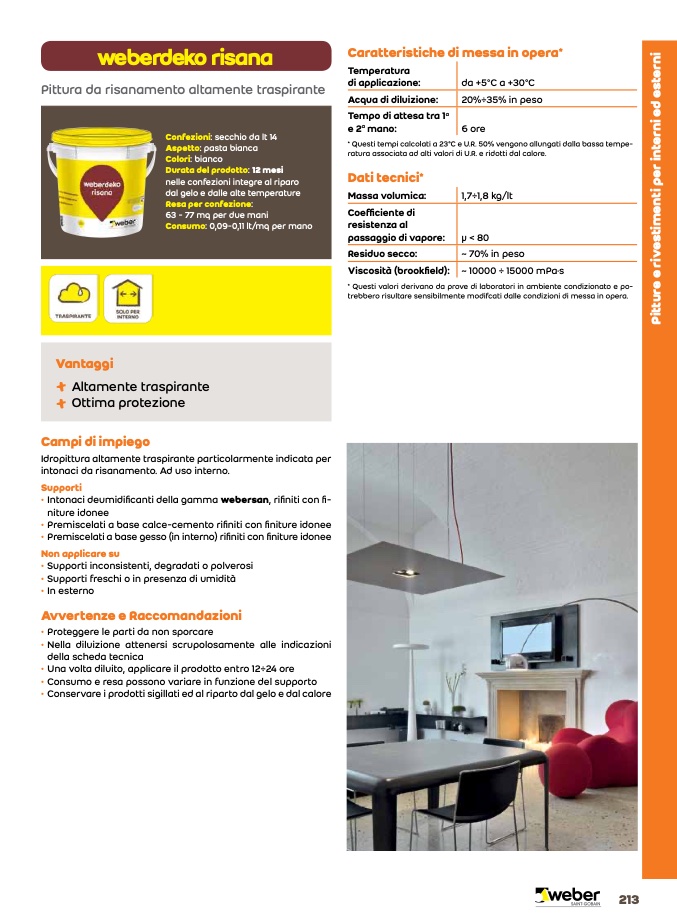 • Intonaci deumidificanti della gamma webersan, rifiniti con fi-