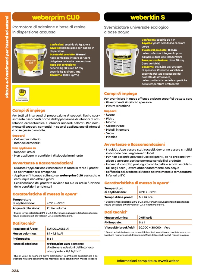 • Applicare l’intonaco soltanto su weberprim CL10 essiccato e
