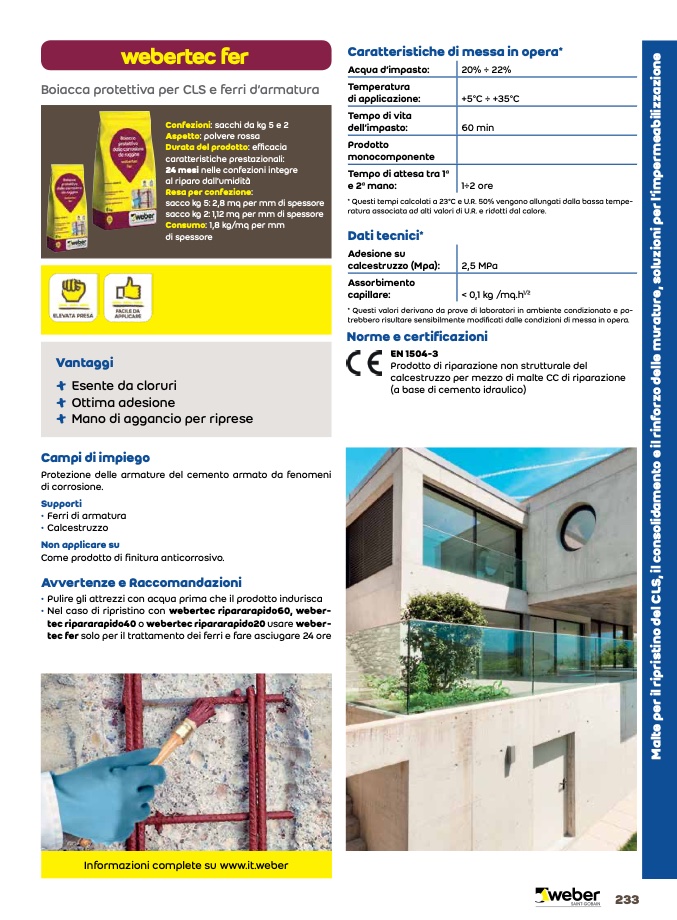 • Nel caso di ripristino con webertec ripararapido60, weber-