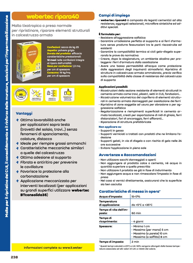 • webertec ripara40 è composto da leganti cementizi ad alta