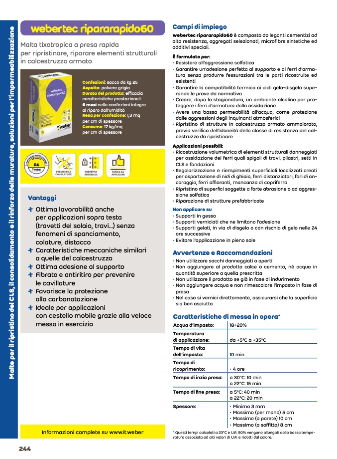 webertec ripararapido60 è composto da leganti cementizi ad