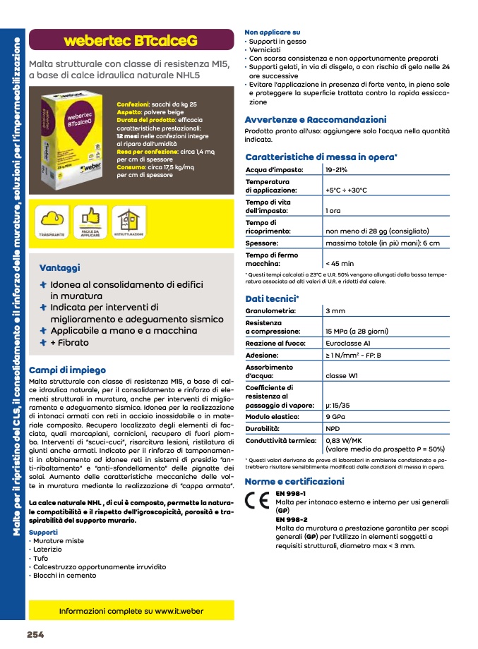 Malta strutturale con classe di resistenza M15, a base di cal-