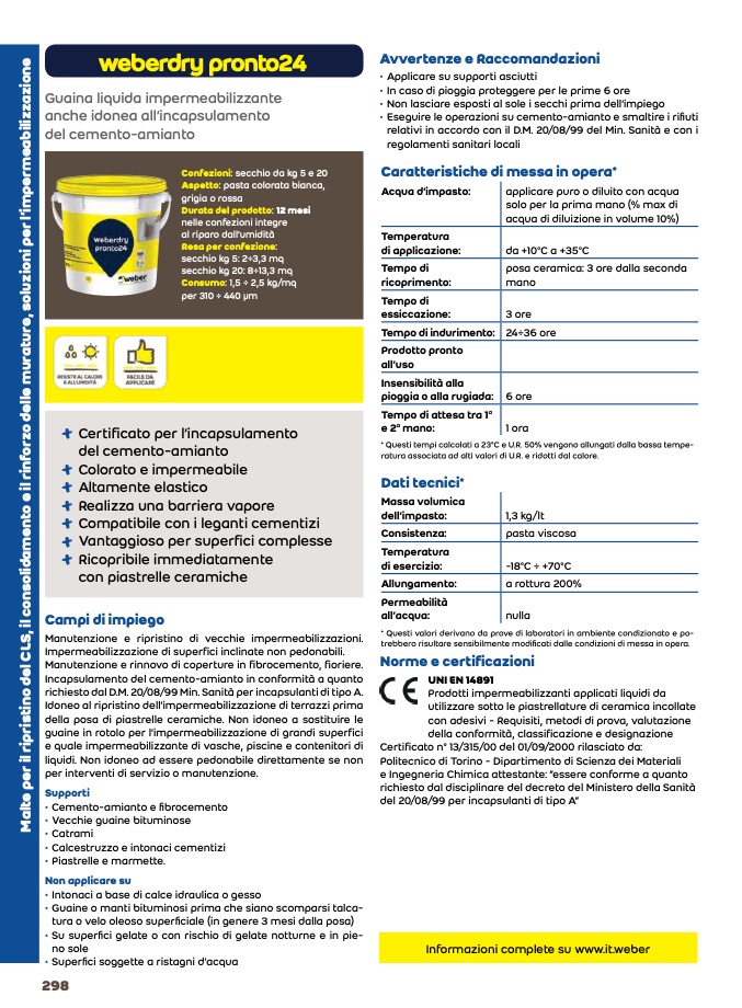 Consumo: 1,5 ÷ 2,5 kg/mq