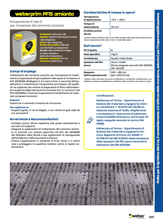 • Eseguire le applicazioni di trattamento del cemento-amian-