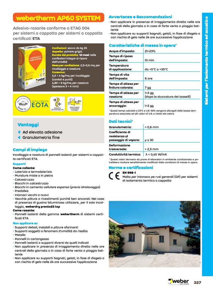 • Pannelli isolanti della gamma webertherm di sistemi certi-