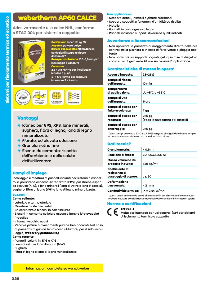 2,3 ÷ 3,8 kg/mq per incollaggio