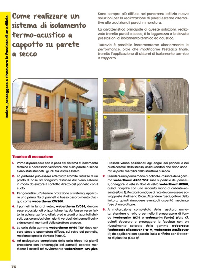 4. I pannelli in lana di vetro, webertherm LV034, devono