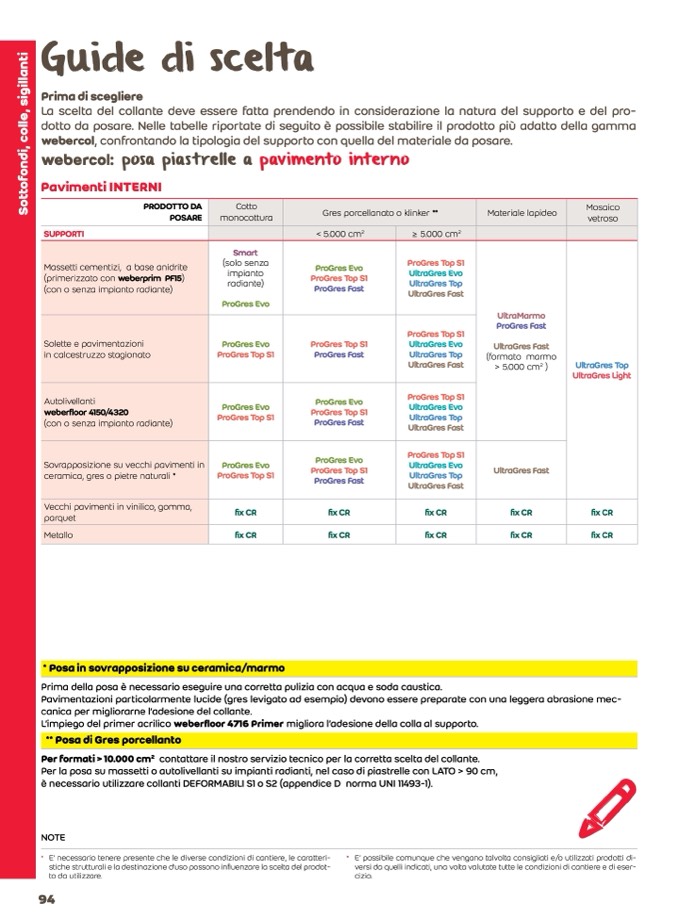 stiche strutturali e la destinazione d’uso possono influenzare la scelta del prodot-