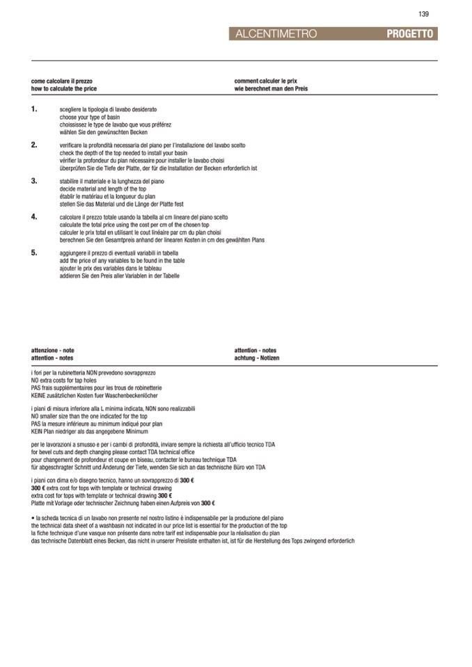 • la scheda tecnica di un lavabo non presente nel nostro listino è indispensabile per la produzione del piano