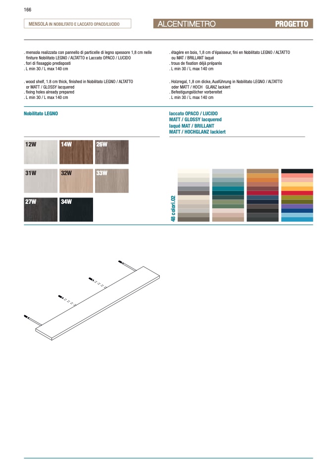 . wood shelf, 1.8 cm thick, finished in Nobilitato LEGNO / ALTATTO