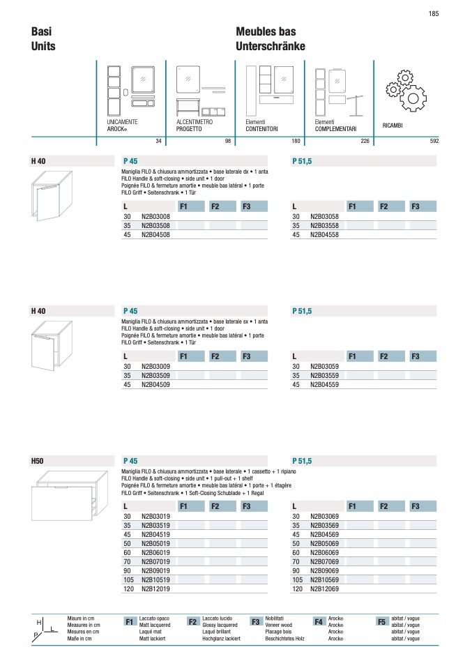 FILO Handle & soft-closing • side unit • 1 pull-out + 1 shelf