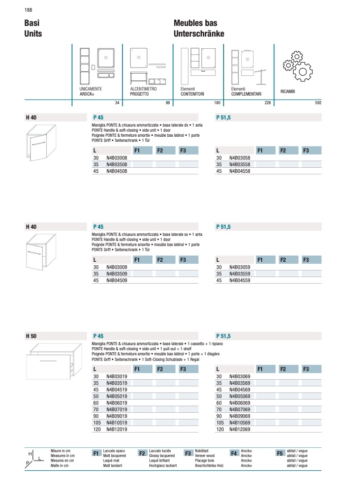 PONTE Handle & soft-closing • side unit • 1 pull-out + 1 shelf