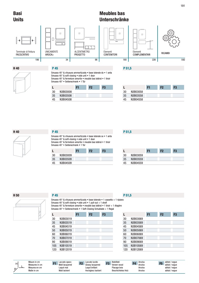 Smusso 45° & fermeture amortie • meuble bas latéral • 1 tiroir