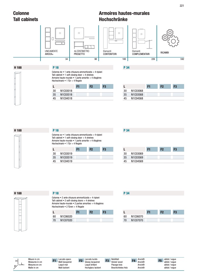 Colonna • 2 ante chiusura ammortizzata + 4 ripiani