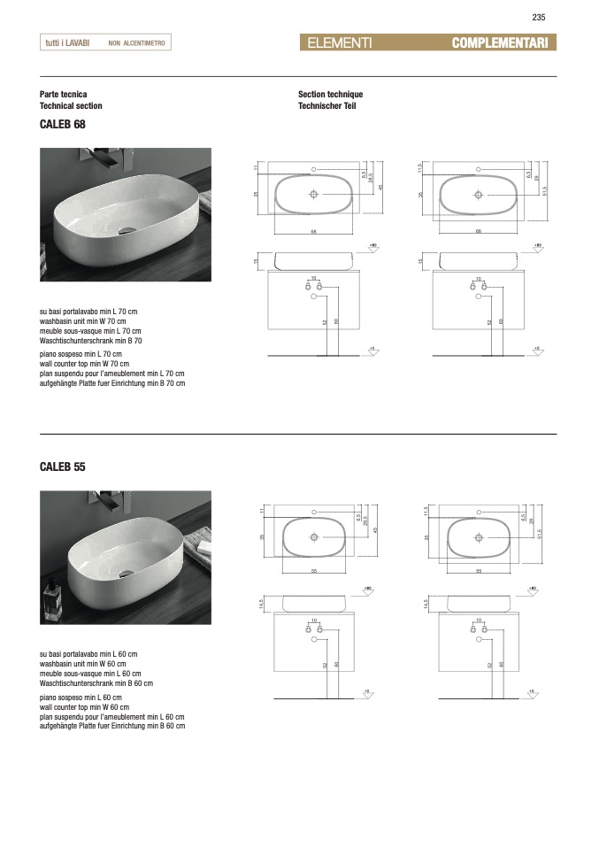 su basi portalavabo min L 70 cm