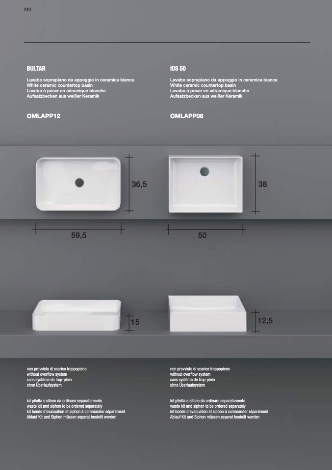 kit piletta e sifone da ordinare separatamente