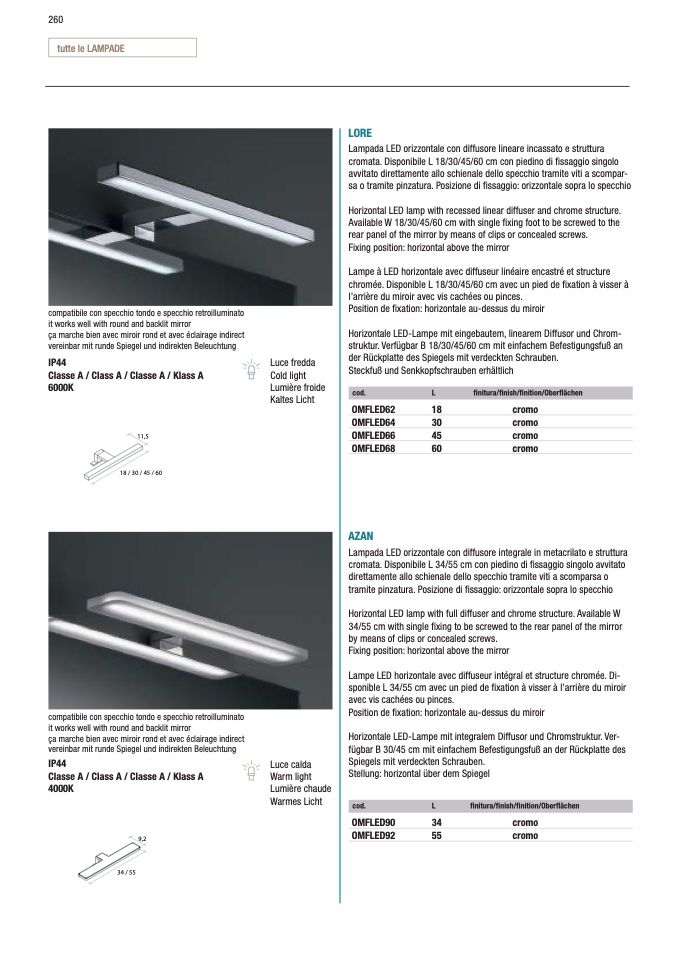 34/55 cm with single fixing to be screwed to the rear panel of the mirror