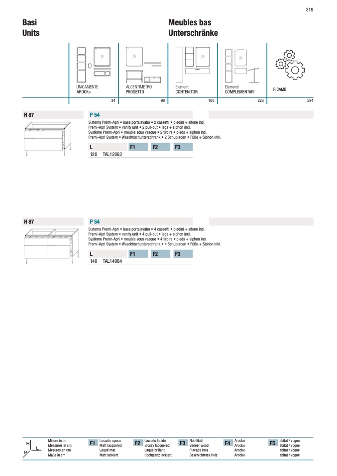 Premi-Apri System • vanity unit • 4 pull-out • legs + siphon incl.