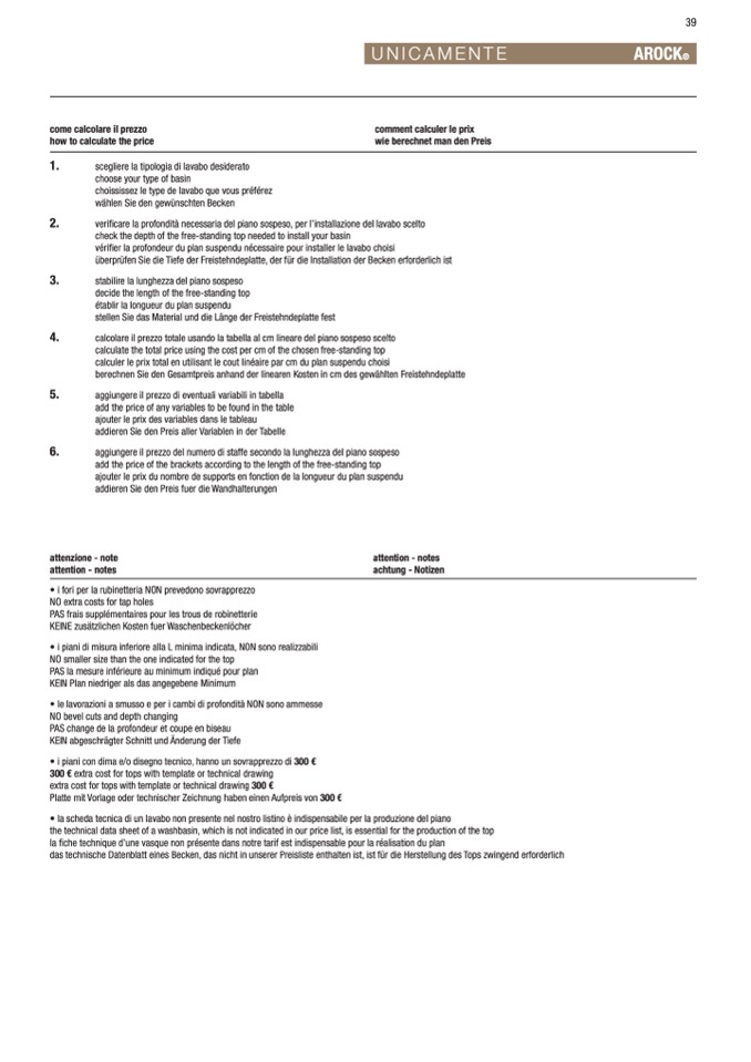 • i fori per la rubinetteria NON prevedono sovrapprezzo