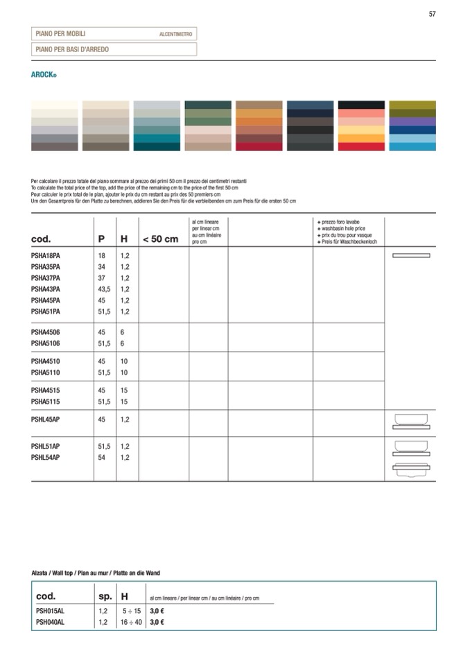 Per calcolare il prezzo totale del piano sommare al prezzo dei primi 50 cm il prezzo dei centimetri restanti
