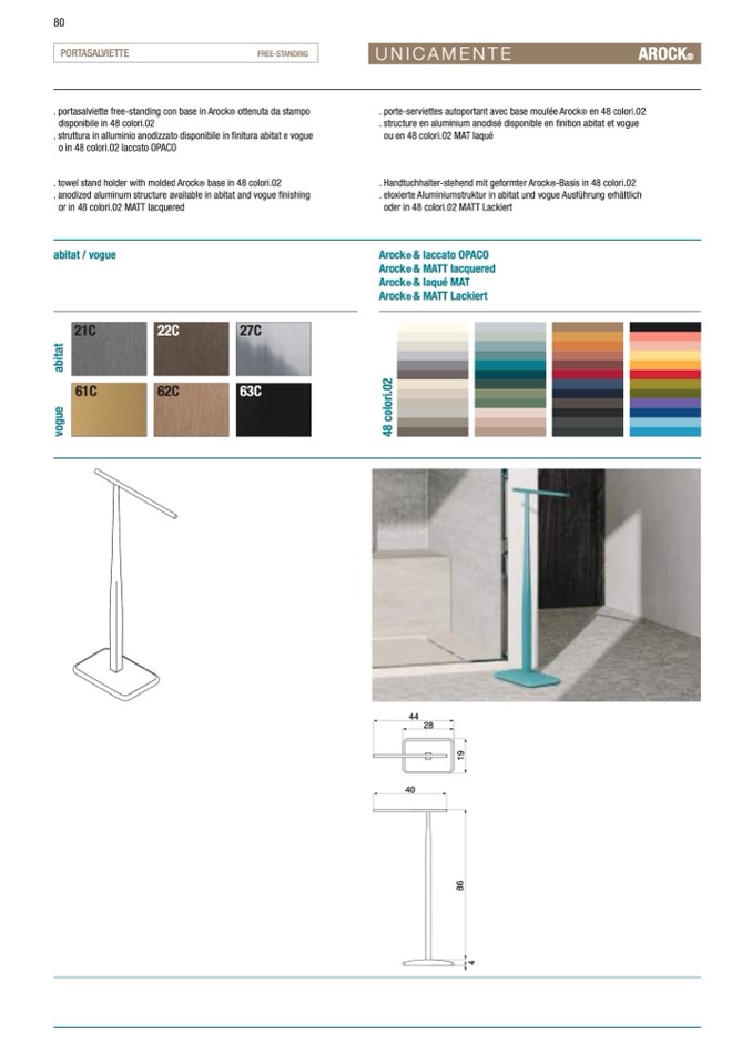 . Handtuchhalter-stehend mit geformter Arock®-Basis in 48 colori.02