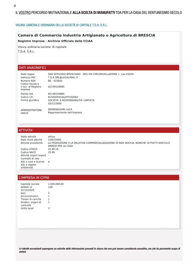 Le tabelle sovrastanti espongono un estratto delle informazioni presenti in visura che non può essere considerato esaustivo, ma che ha puramente scopo di