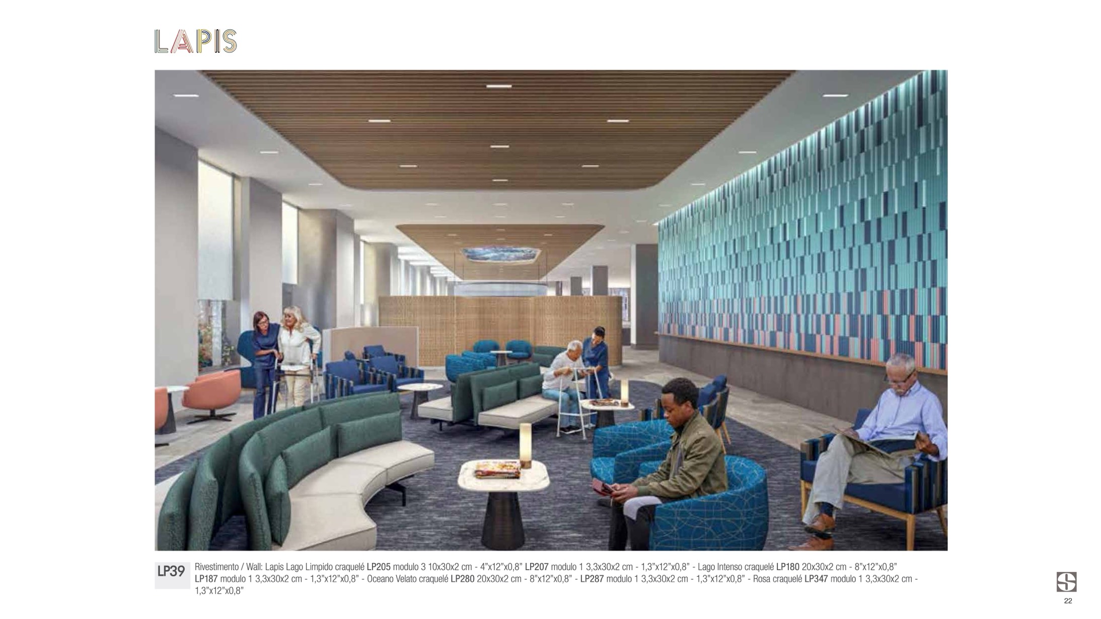 Rivestimento / Wall: Lapis Lago Limpido craquelé LP205 modulo 3 10x30x2 cm - 4”x12”x0,8” LP207 modulo 1 3,3x30x2 cm - 1,3”x12”x0,8” - Lago Intenso craquelé LP180 20x30x2 cm - 8”x12”x0,8”