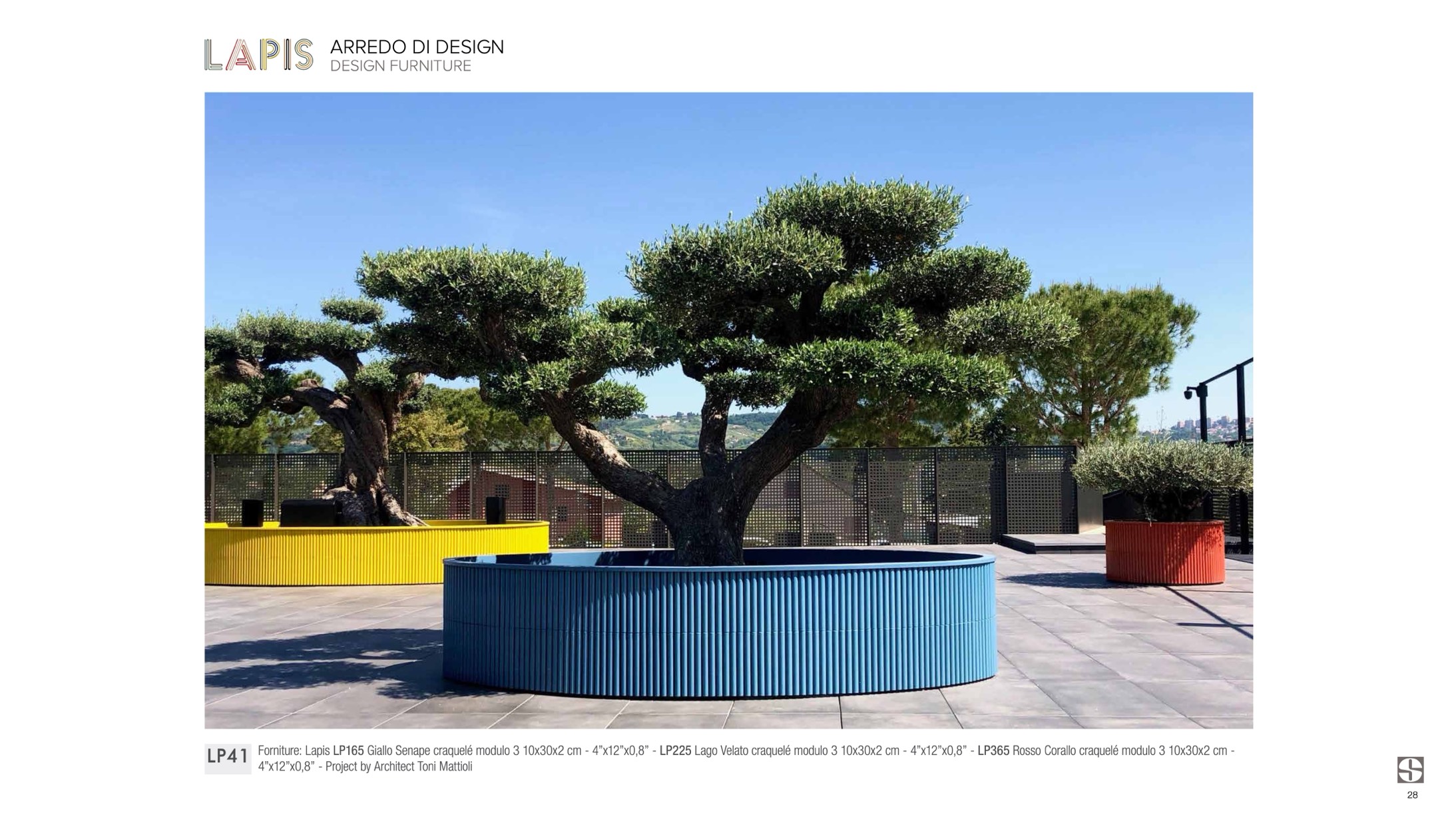 Forniture: Lapis LP165 Giallo Senape craquelé modulo 3 10x30x2 cm - 4”x12”x0,8” - LP225 Lago Velato craquelé modulo 3 10x30x2 cm - 4”x12”x0,8” - LP365 Rosso Corallo craquelé modulo 3 10x30x2 cm -