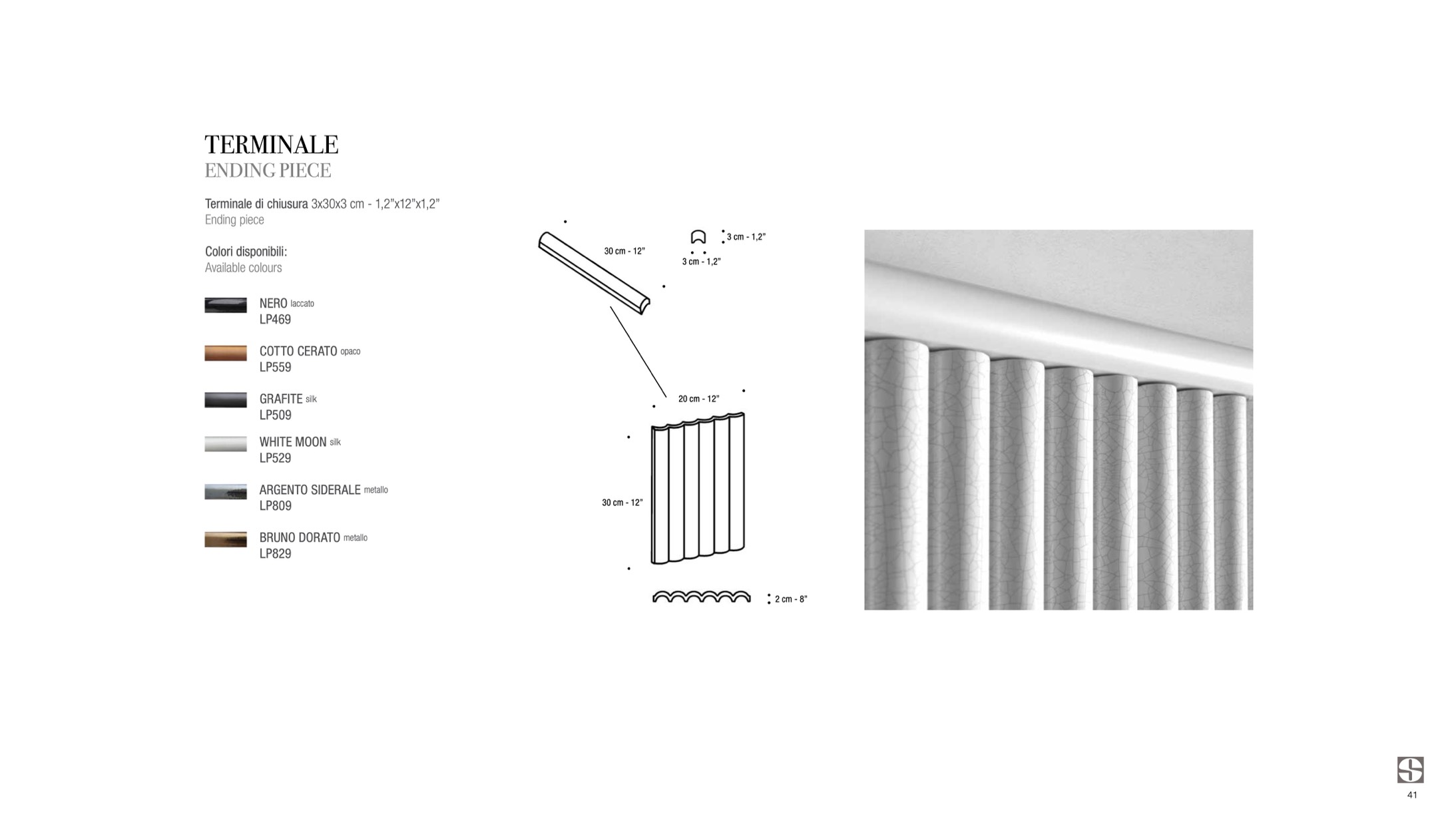 Terminale di chiusura 3x30x3 cm - 1,2”x12”x1,2”